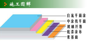 1、基層處理; 2、砒涂乙烯基脂滲透底涂; 3、鋪貼玻纖布,將調(diào)好的乙烯基脂環(huán)氧樹脂和固化劑倒于玻纖布上涂刷; 4、中涂找平層; 5、在面層鏝刮環(huán)氧自流面涂確保表面平整光潔。 |